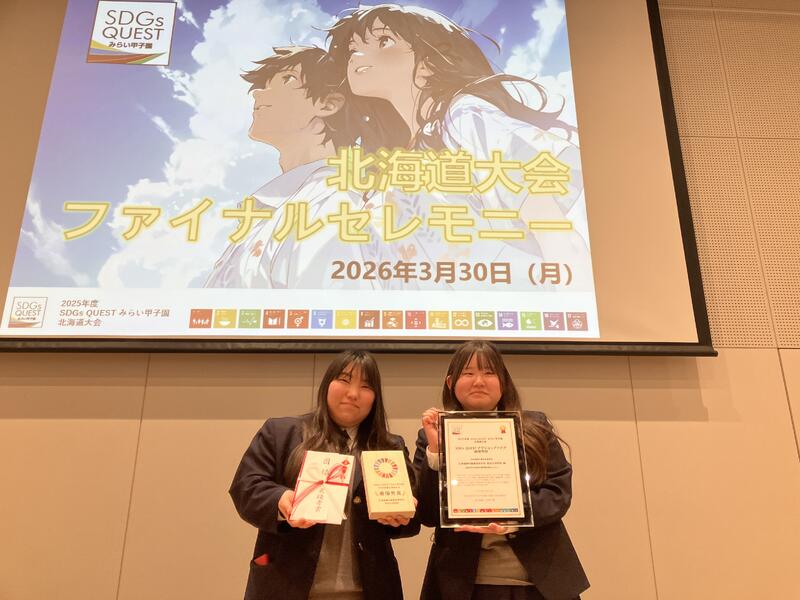 3月30日 札幌市にてSDGs QUEST みらい甲子園北海道大会が開催され、食品科学科乳加工研究班が発表を行いました。現在、皆さんが大好きなアイスやチーズを作るときに出てくる脱脂乳を粉末にした脱脂粉乳を家庭に取り入れよう!などの活用提案を行い最優秀賞を受賞しました!この学びは、地域の方々や関わってくださった企業の方々から学んだ学習の成果です。ご協力いただきありがとうございました!