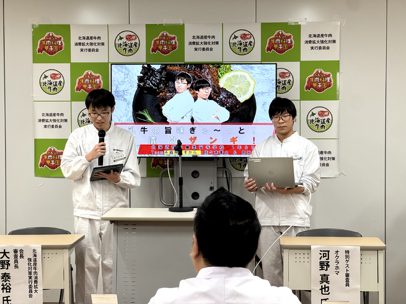 本選では緊張感のある中、制限時間内に実際に料理をつくり試食し、プレゼンテーションを行いました。参加した生徒は1年生と2年生だったため、「来年度に向けて更に牛肉について理解を深め、牛肉の普及に役立ちたい」と話していました。御協力いただいた皆様、ありがとう御座いました!!