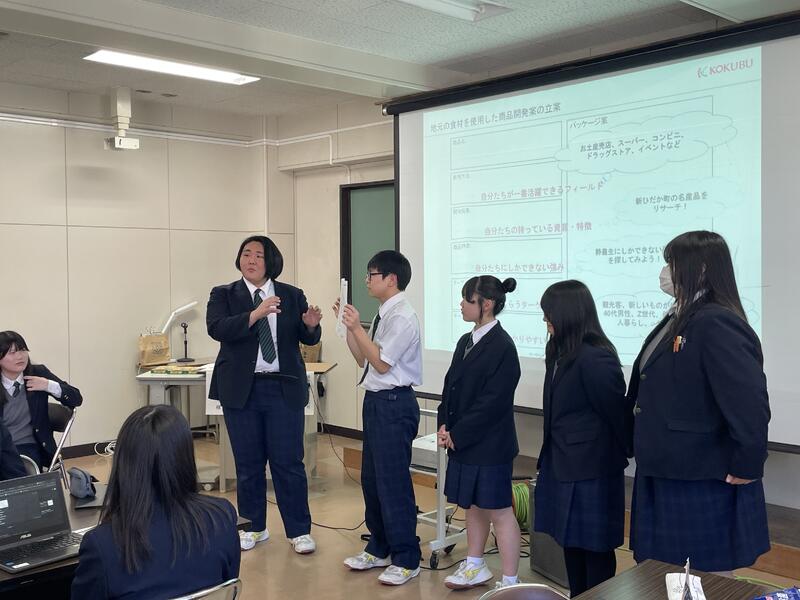 3月18日(水)、静農コンソーシアム事業の一環で、食品科学科1年生を対象に国分北海道株式会社様にご来校いただき、「食品開発」をテーマに特別講義をしていただきました。講義では、食品流通や卸売業の仕組みや役割、商品開発においてのマーケティング(STP分析、ブルーオーシャン戦略、戦略的BASiCSなど)の基本手法を学習することができました。また商品開発の企画から発売までのプロセスを本校と国分北海道株式会社様、南華園様と連携し、作り上げた「みついし牛キーマカレー」の開発事例をもとに学習できたことで生徒はより商品開発に興味を持ったようでした。また、授業内では北海道の第一次産業の強みと加工分野の課題にも触れ、地域資源を活かした商品開発の重要性を学んだ後に、日高エリアの食材を使った商品企画のグループークを行い、生徒たちはより実践的に商品開発について学習することができました。国分北海道株式会社の皆様、この度は、お忙しい中ありがとうございました!