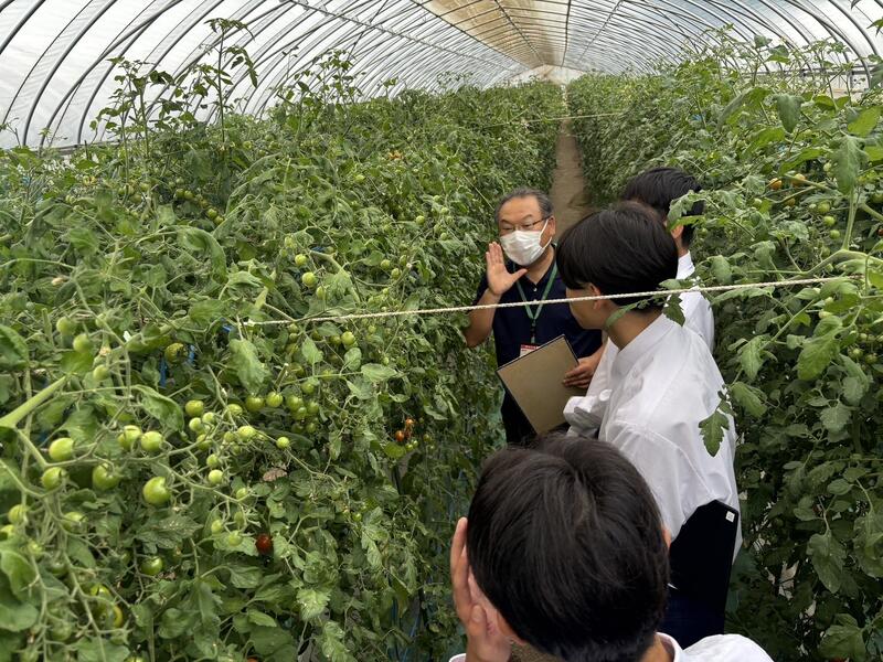 まず、新規就農予定者の研修施設である静内ハウス団地を訪問し、ミニトマトの栽培について学びました。33棟もあるビニールハウスで1年間研修をしてから、実際に新規就農ができるこの施設は、新規就農予定者には非常に心強い存在だと感じました。