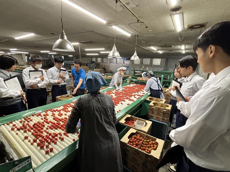 その後、JAしずない選果場で収穫後のミニトマトの選果や箱詰め作業を見学し、流通について理解を深めました。