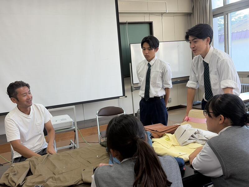 また、放課後の時間を活用して、農業クラブ執行部の生徒が取り組んでいるオシャレ作業着の開発事業についても様々なアドバイスをいただきました。